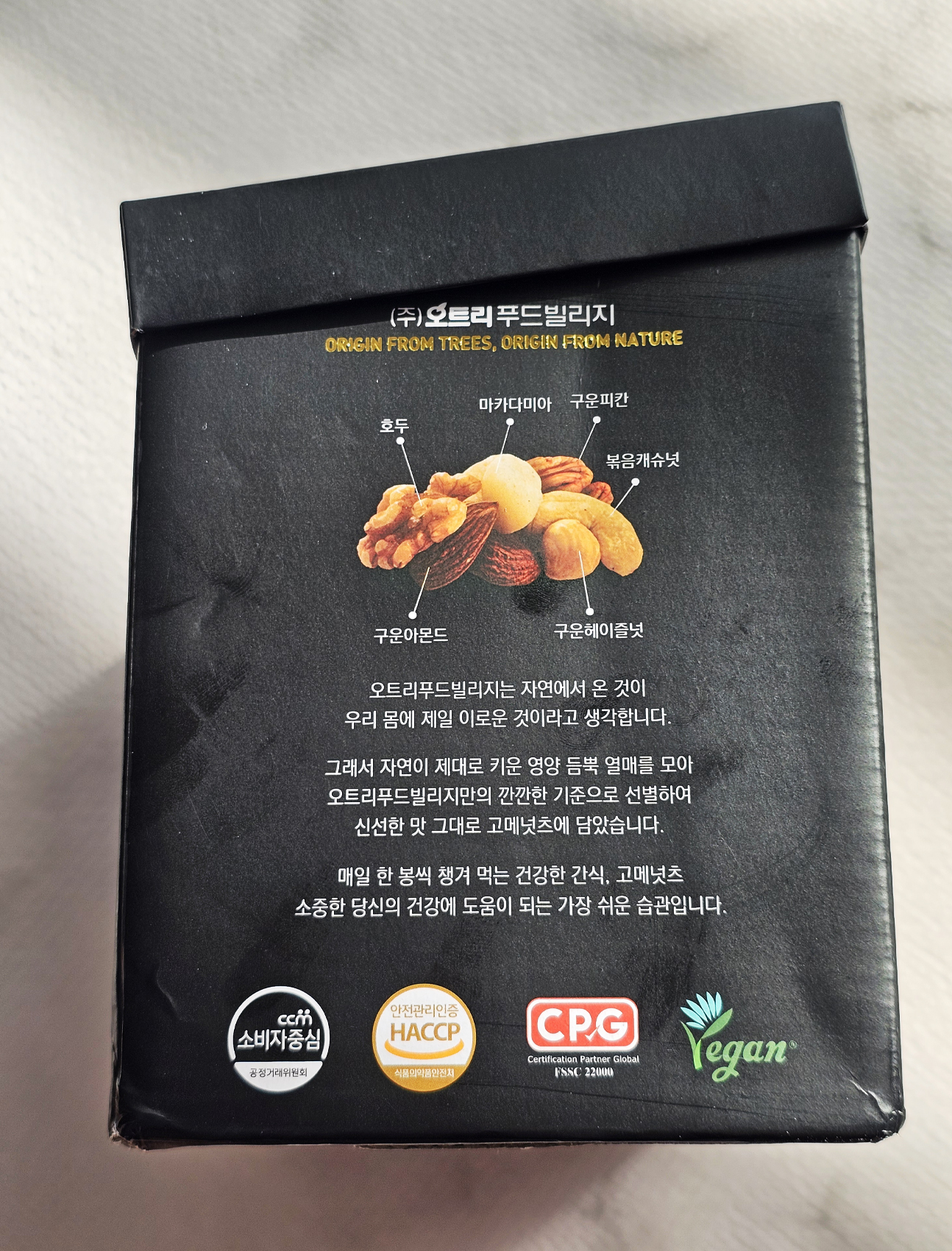 고메넛츠에는 호두, 마카다미아, 구운피칸, 볶음캐슈넛, 구운아몬드, 구운헤이즐넛이 들어있는데요